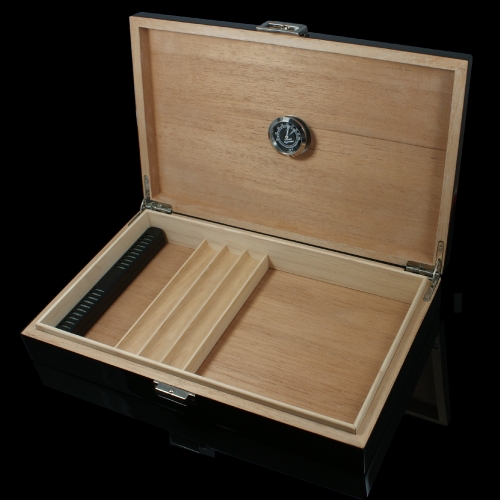 Opis: Humidor Cedrowy "Attitude" 76164 (zestaw) Wymiary: 308mm x 190mm x 55mm Humidor wyłożony drewnem cedrowym wyposażony w higrometr, nawilżacz, zakraplacz. Całość wykończona na wysoki połysk w kolorze metalicznego grafitu. W skład zestawu wchodzi także : - obcinarka cygarowa - żarowa zapalniczka do cygar - metalowo-drewniana popielniczka do cygar Wszystkie elementy wykończone tak by tworzyły zamkniętą serię "Attitiude" ![]() ![]() ![]()